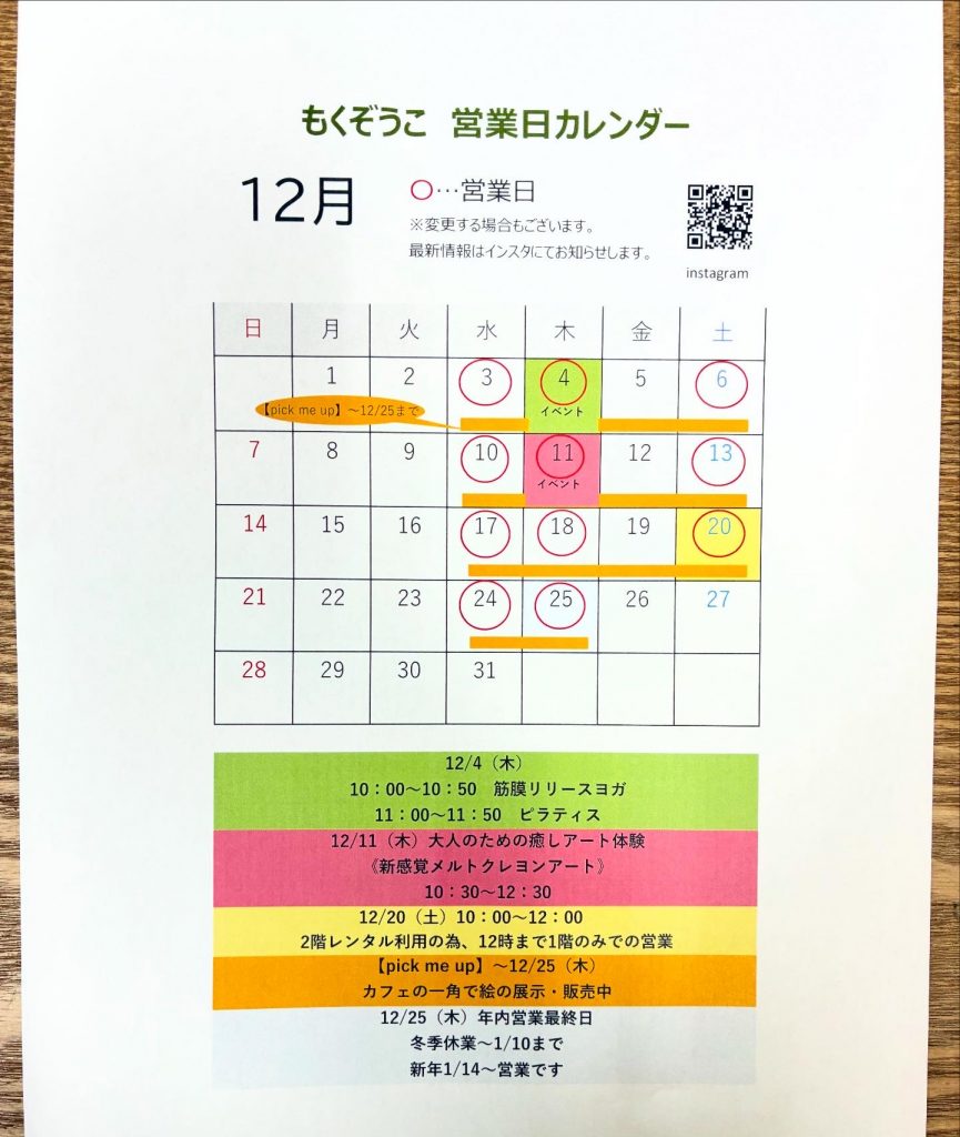 12月の営業日です(半分過ぎてしまいましたが💦)